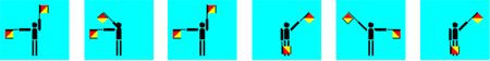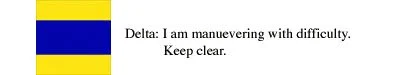 Prior to the radio, flags comprised the primary method of communication from ship to ship and ship to shore. An entire language of signal flags developed that is still in use today. The International Code of Signal Flags consists of 40 flags made from combinations of red, white, black, yellow and blue -- the only colors easily distinguishable at sea. Twenty-six of the flags represent the letters of the Roman alphabet, ten flags represent the Arabic numerals, three are used as repeaters or substitutes, and one is for “code.” In addition to the letter or number it represents, each flag has it own individual meaning, such as: